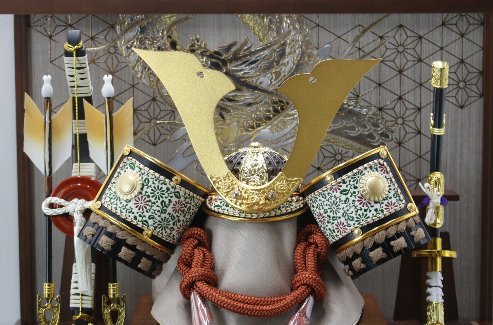 茶色のケースで落ち着いたどっしりとした兜飾りです。