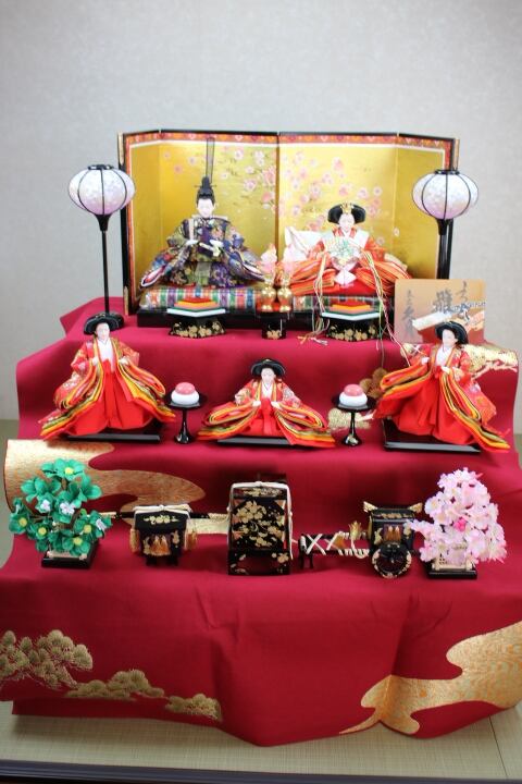 2543 久月雛人形三段飾り赤毛氈