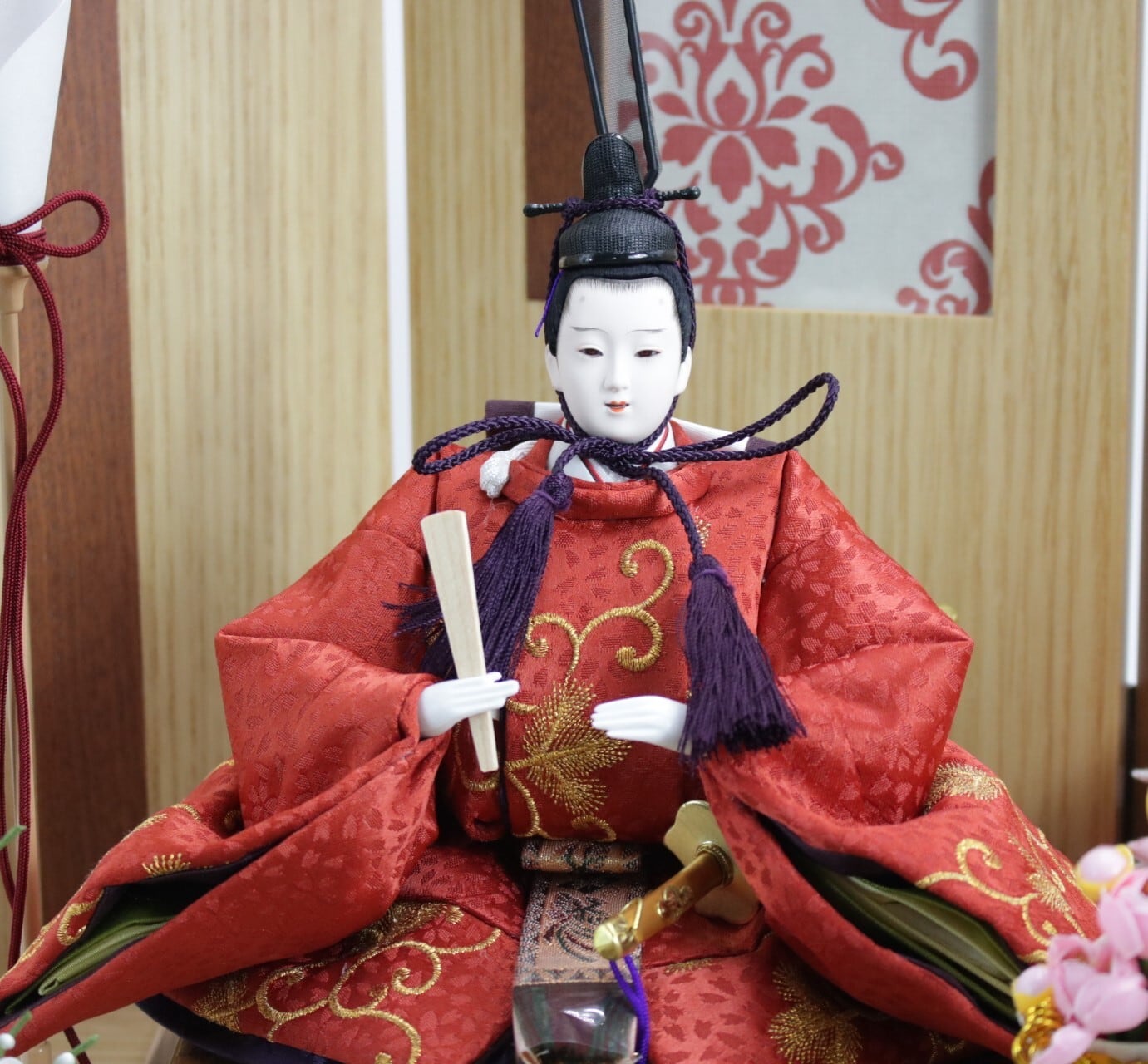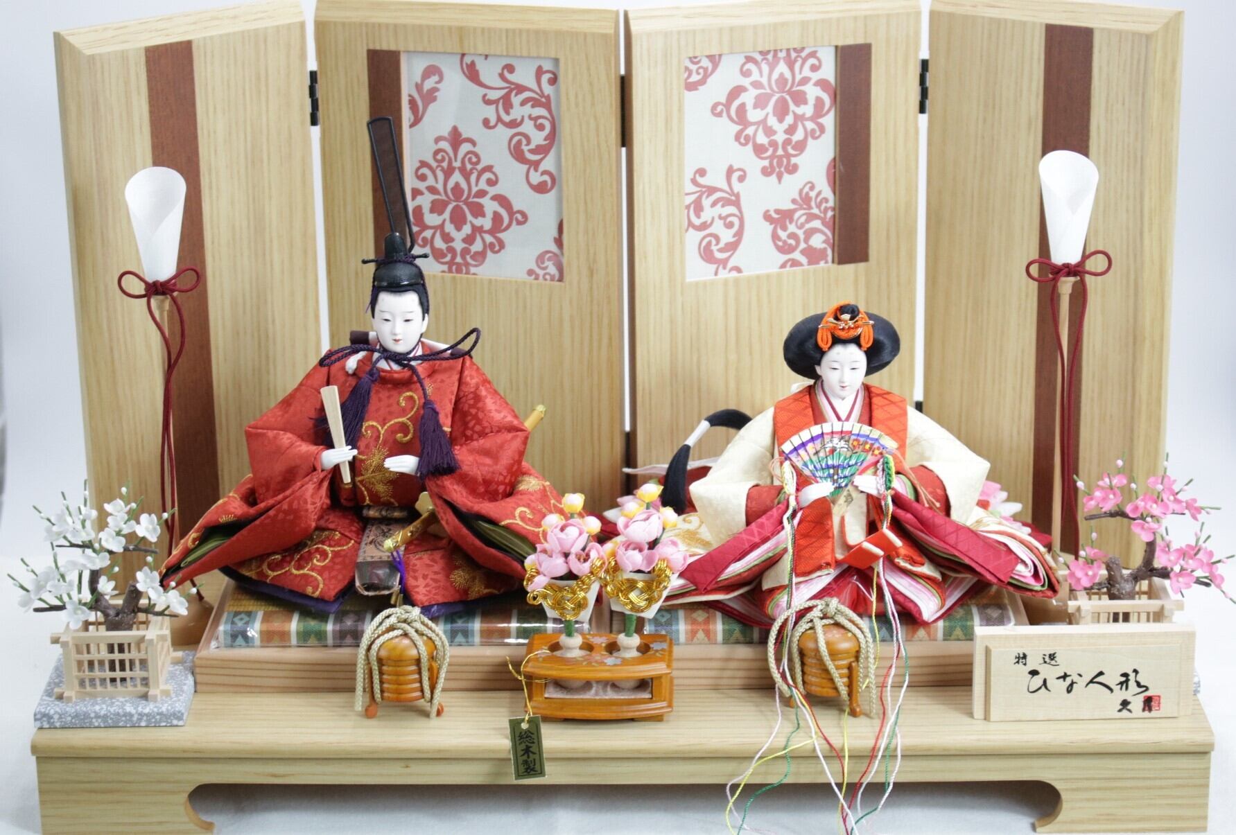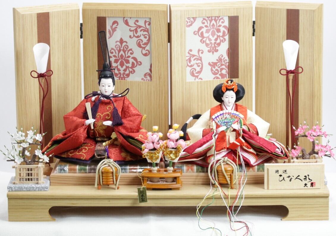 木目の明るい雰囲気でインテリアにまっちする親王飾りです。