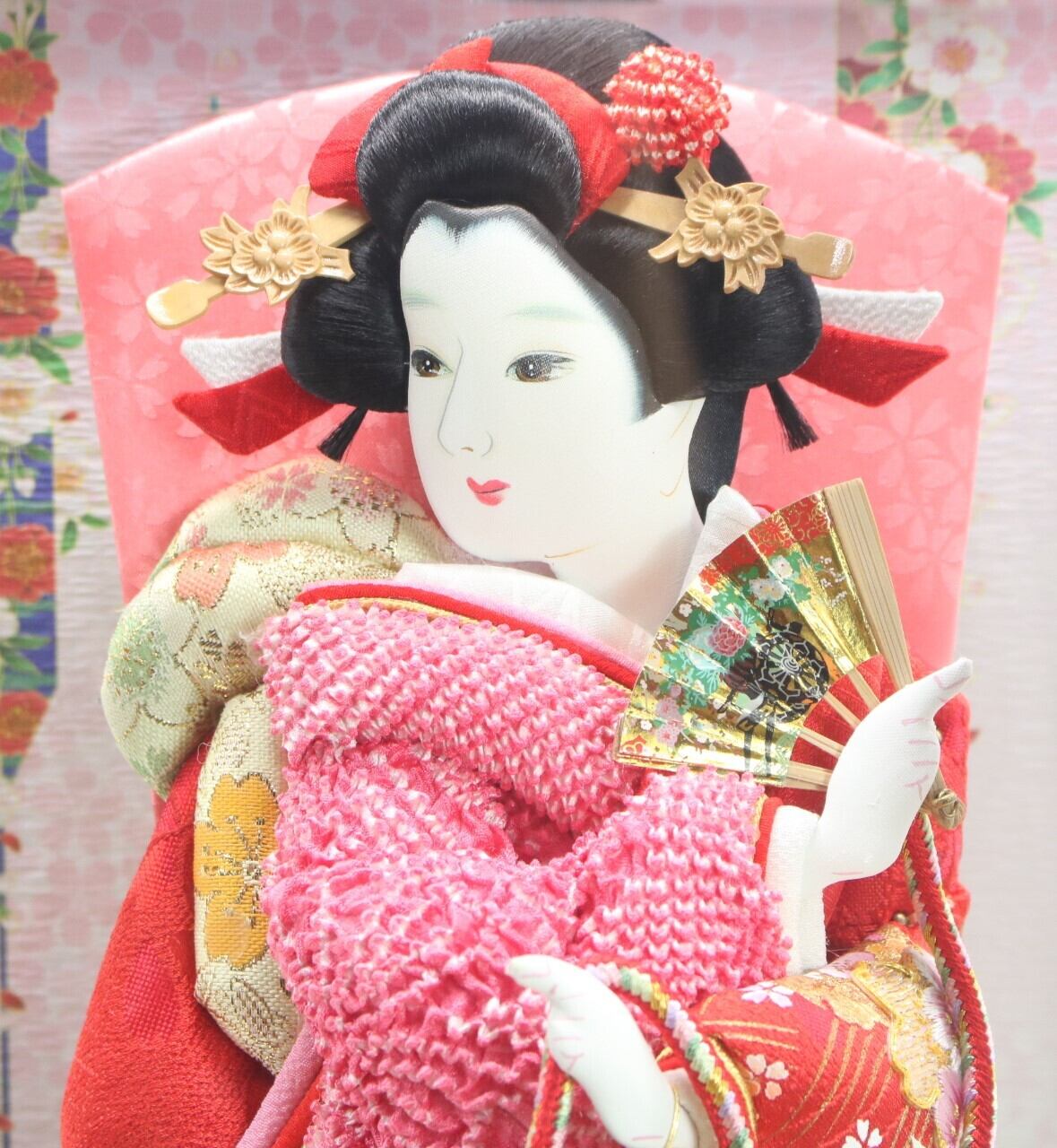 羽子板は正絹鹿の子振袖です。