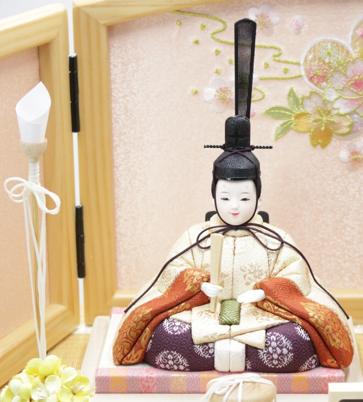 木を基調としているので明るい雰囲気のかわいらしい雰囲気の雛人形です。