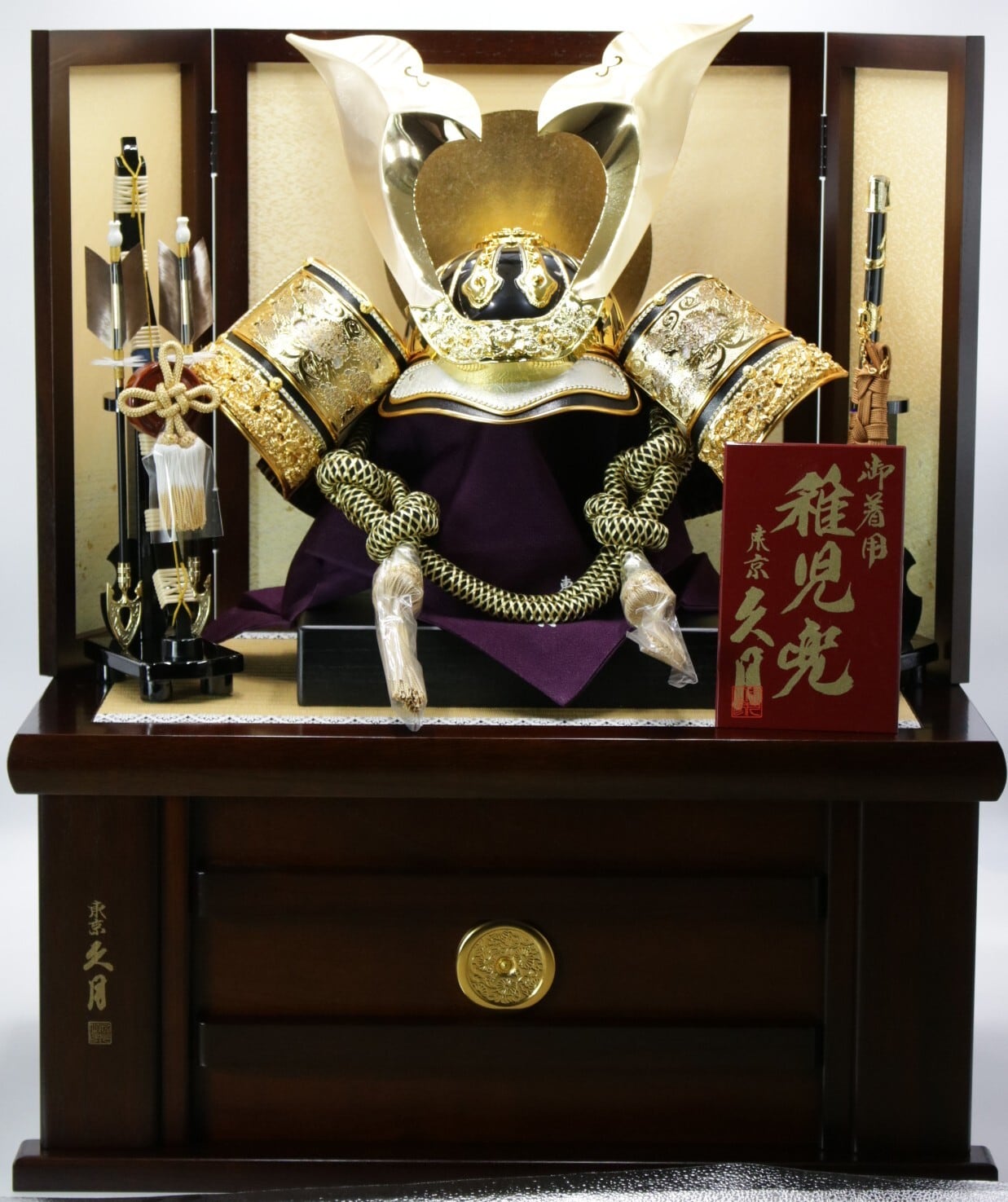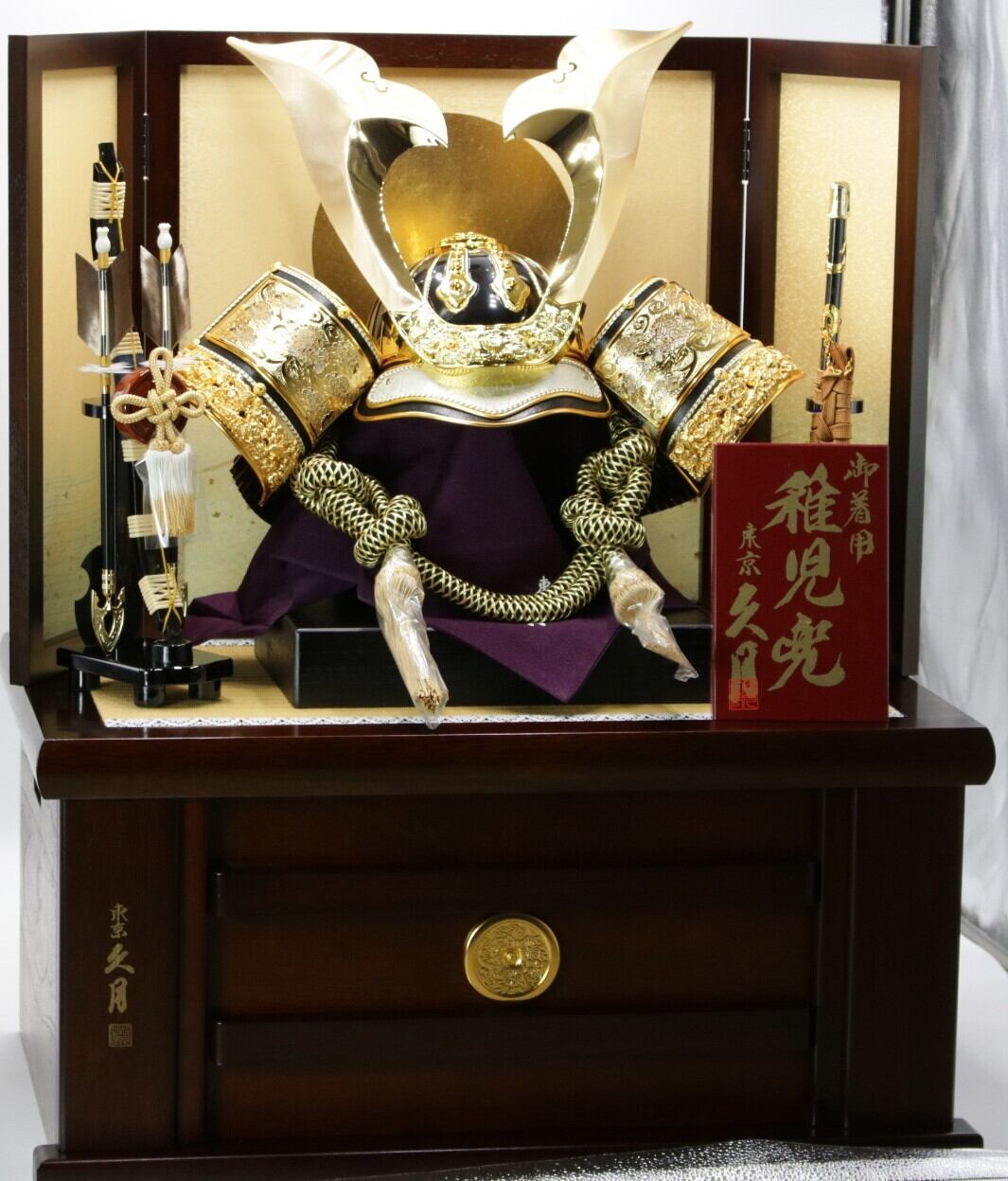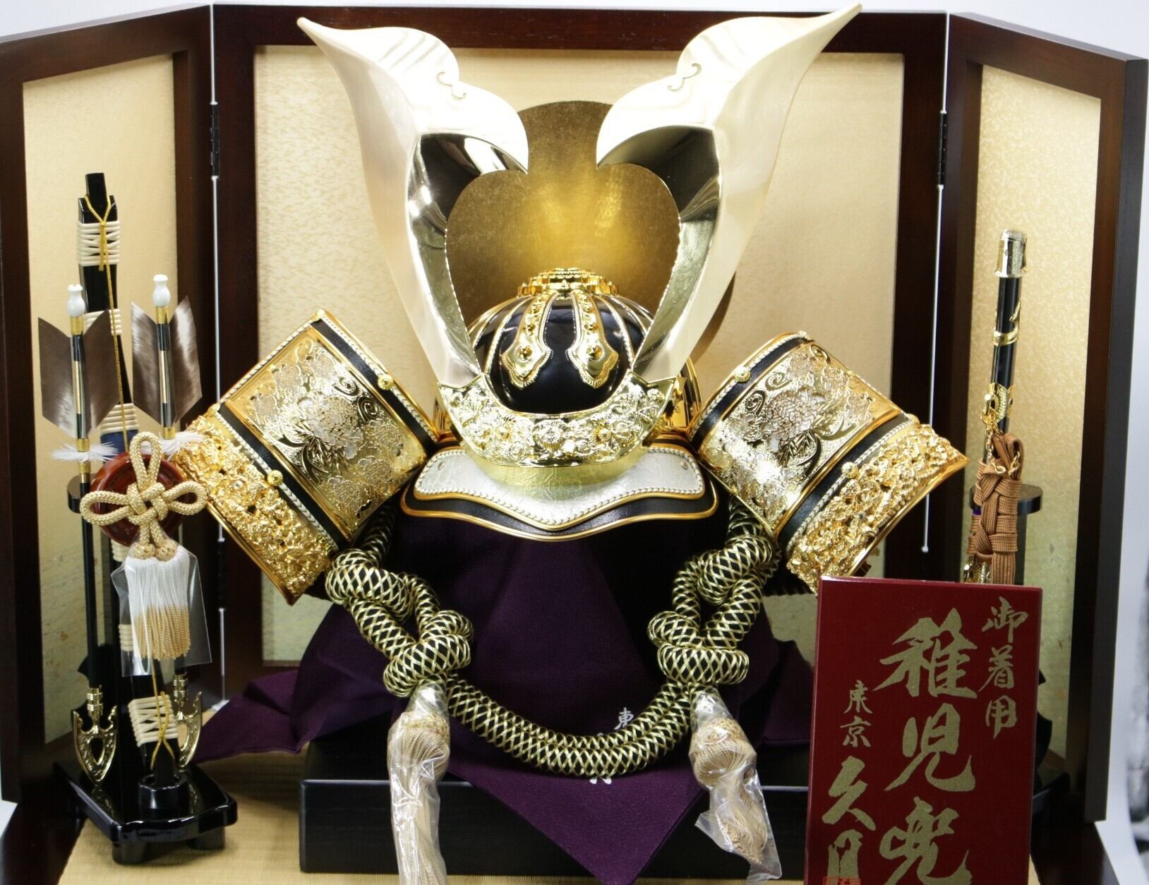 太陽の屏風に金色の兜がとてもよく映える迫力のある