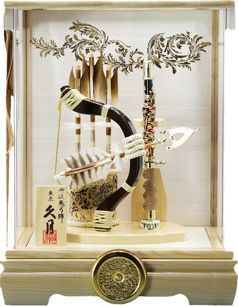 木のケースに今にも矢が放たれそうな珍しい破魔弓です!