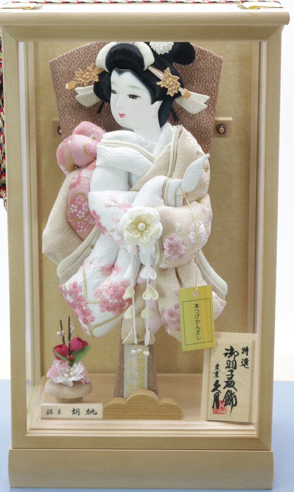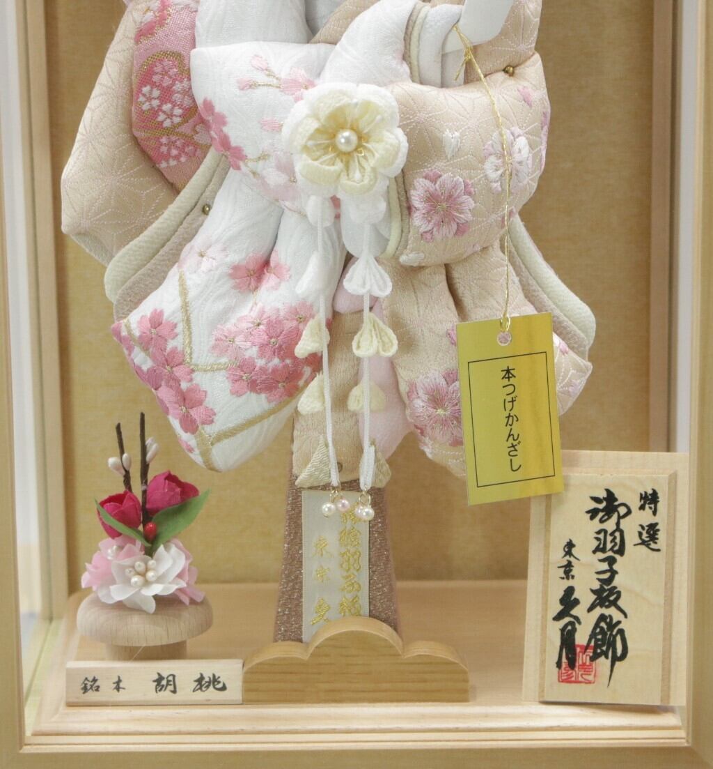 銘木胡桃のケースに羽子板が映える品の良い商品です。